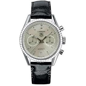 Stainless steel case and bracelet. Black leather strap. Mother-of-pearl dial. Diamond bezel. Synthetic sapphire crystal. Deployment buckle. Case diameter 39mm. Automatic movement. Water resistant at 30 meters (100 feet). Tag Heuer Carrera Diamond Unisex Watch CV2116.FC6180 / CV2116/FC6180 / CV2116-FC6180 / CV2116FC6180